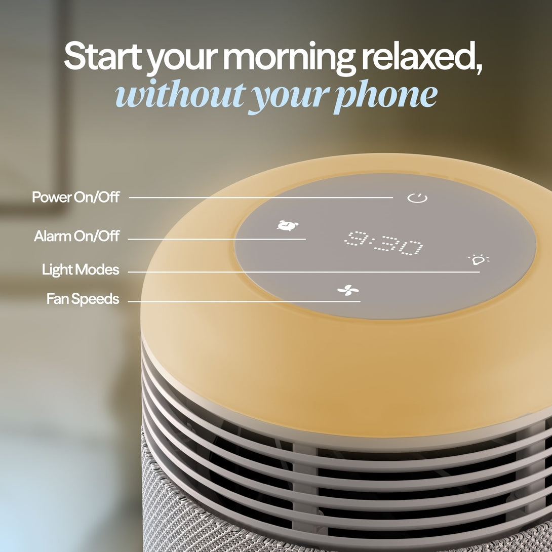 - [Dual Function]: Air purifier + sunrise alarm clock.