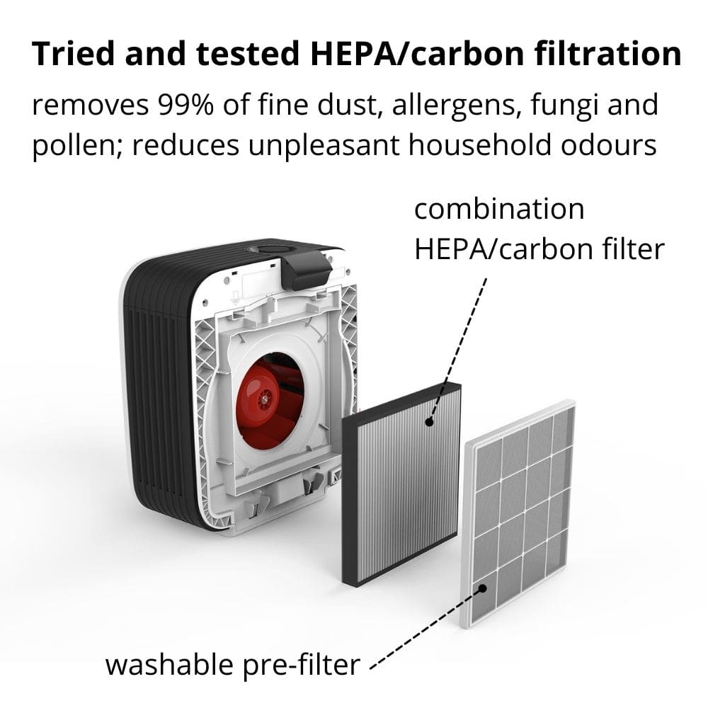 - [Active Carbon Layer]: Neutralises odours and harmful gases such as VOCs and formaldehyde.