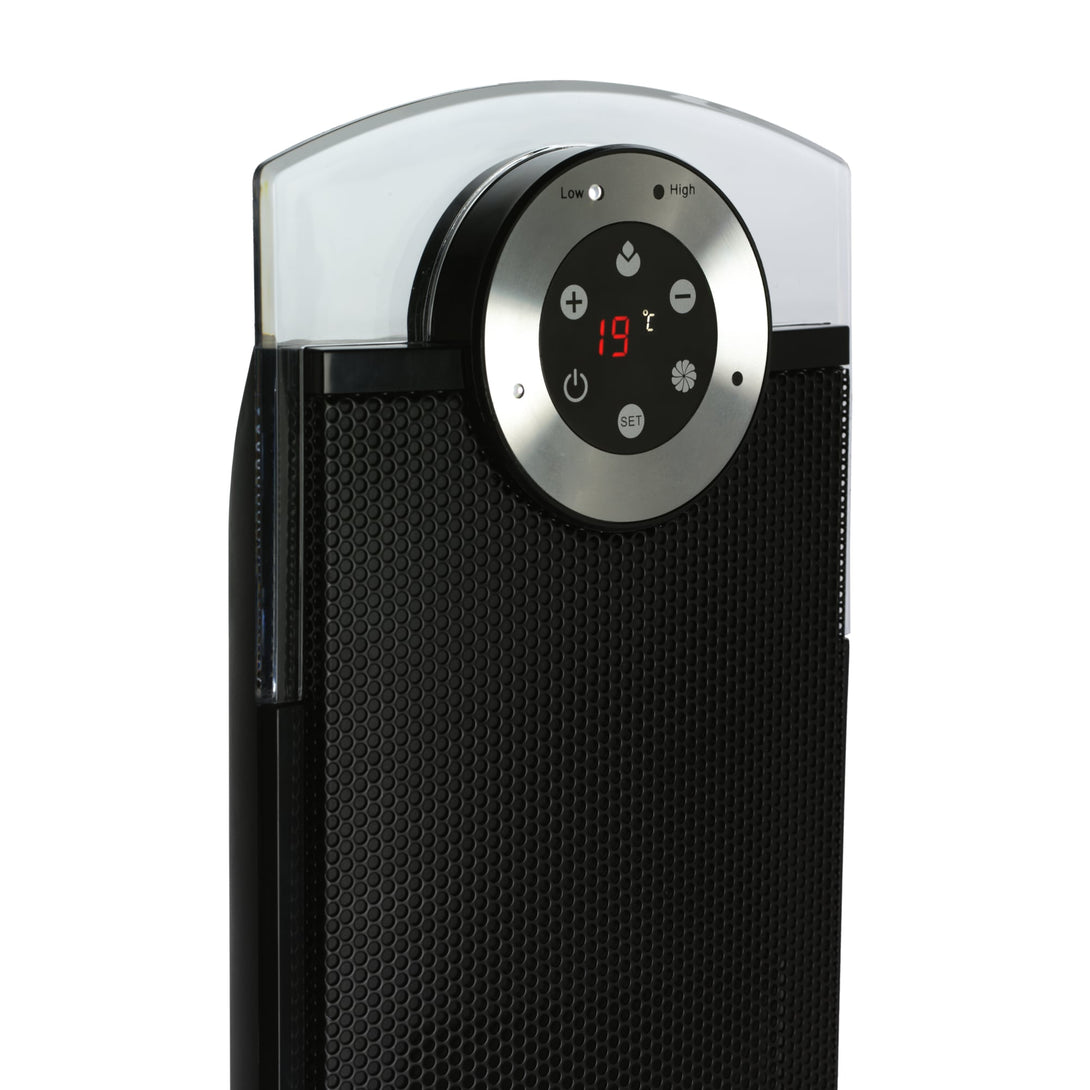 The Studio G Tower Heater combines sleek, speaker‑style design with powerful ceramic heating. With a smoked‑glass base, LED display, and remote control, it’s built to deliver fast, even warmth while blending seamlessly into modern living spaces.