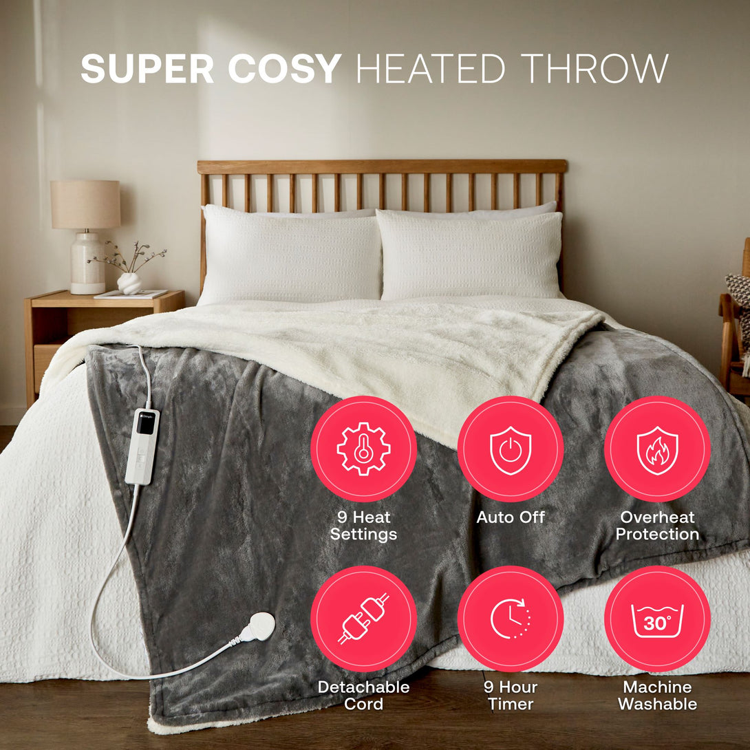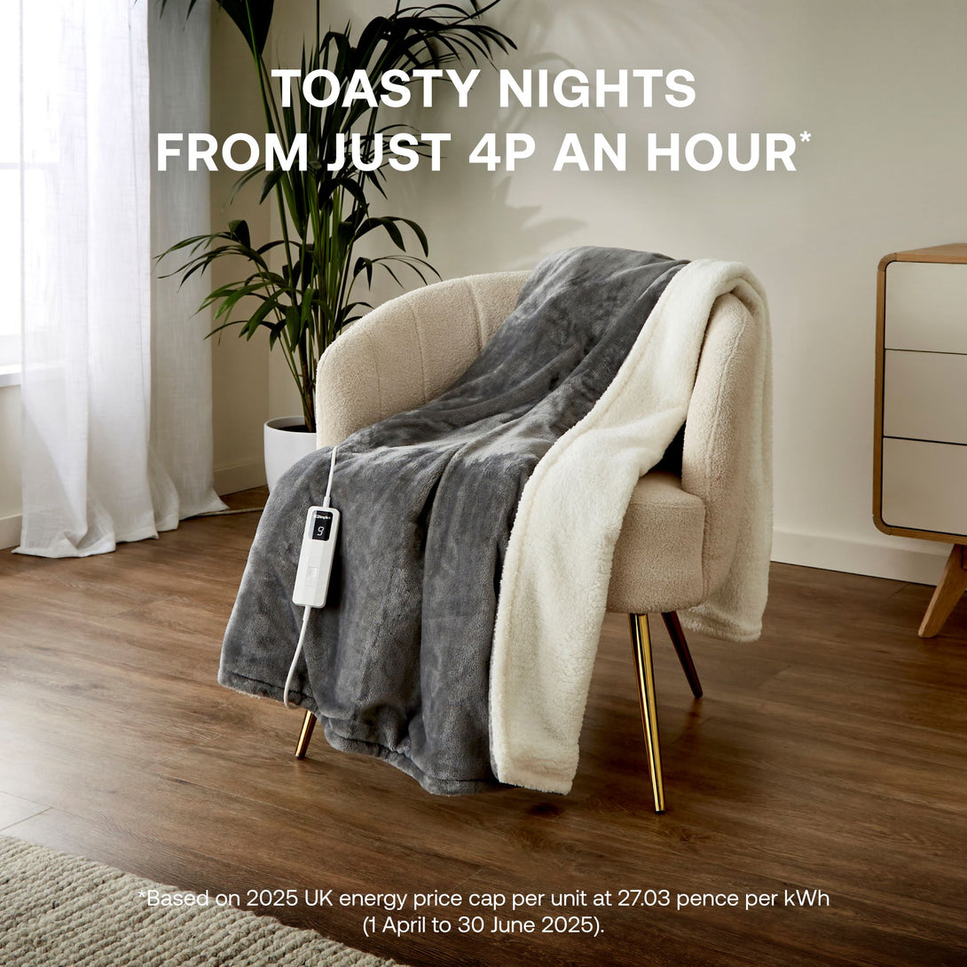 The Super Cosy Sherpa Heated Throw combines style, comfort, and efficiency. With a soft fleece front and plush sherpa reverse, it delivers luxurious warmth at low running costs. Featuring 9 adjustable heat settings and a programmable timer, it’s perfect for cosy evenings, extra bed warmth, or reducing reliance on central heating.
