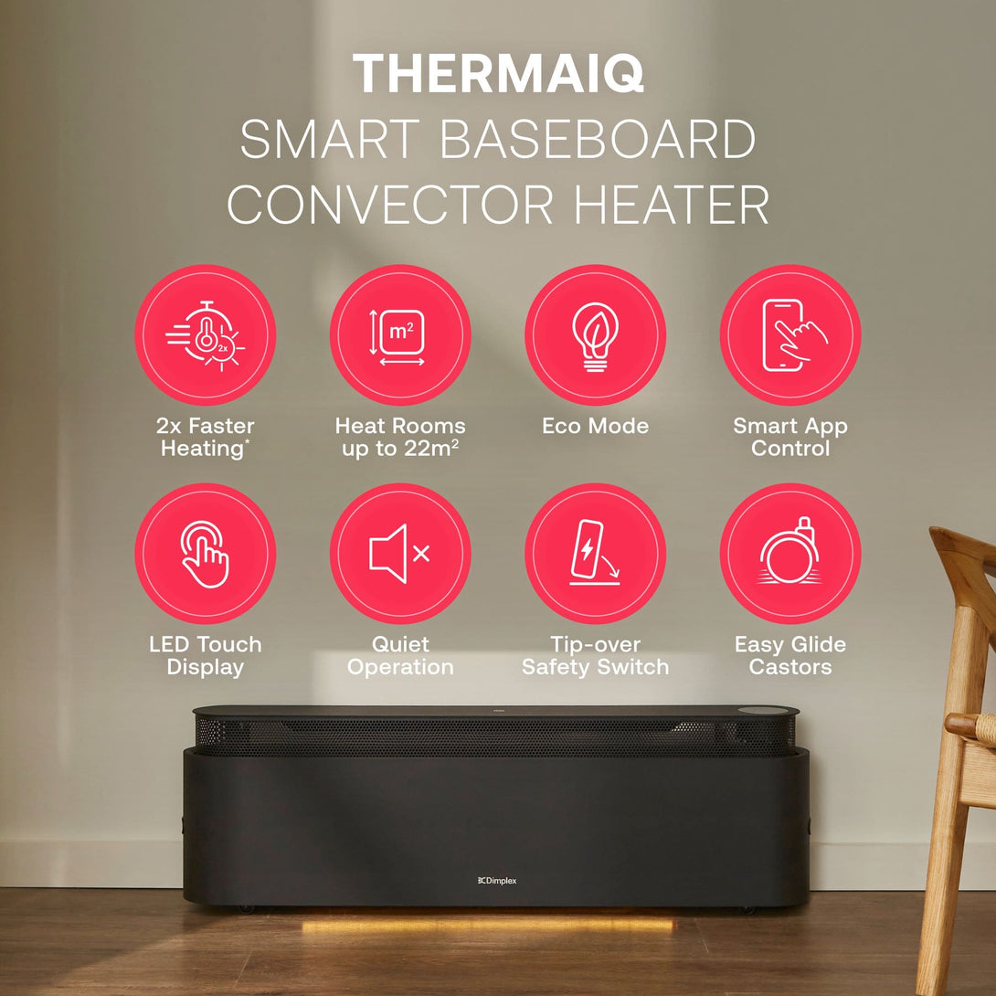 The ThermaIQ Smart Baseboard Convector Heater is designed to deliver fast, even warmth in rooms up to 22m². With smart adaptive heating, ECO mode, and app control, it blends efficiency with style — perfect for bedrooms, living rooms, or home offices where reliable, controllable heat is essential.