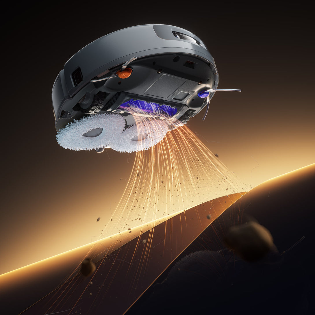 - [AI DirtSense™ Auto‑Wash]: Detects mop dirt level, triggers hot‑water rewash (45–75°C) until clean.